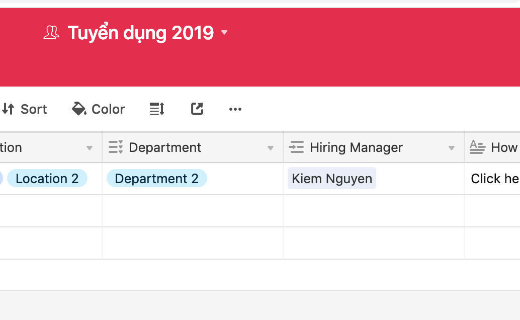 2 - Trong Phòng tuyển dụng, mình sẽ tạo một cái Base gọi là Tuyển dụng 2019
